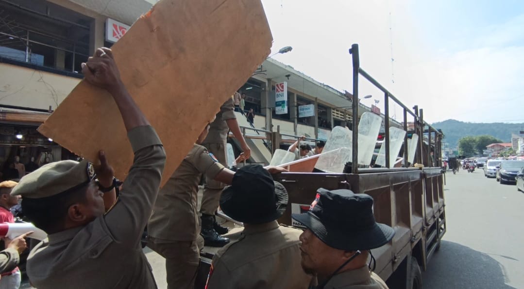 PopsEra.id–Pemerintah Kota Padang melalui tim gabungan yang melibatkan Satuan Polisi Pamong Praja (Satpol PP), TNI, Polri, serta Dinas Perdagangan melakukan penataan kawasan selasar Pasar Raya Padang, Selasa (3/2/2026).